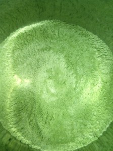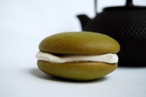 I’ve been taking the easy way out with these posts and I admit it, but gobbing has been a far more time-consuming process than I thought; I’m juggling baking, delivering, promoting, and of course, writing the book. So, since I’ve been so negligent, and since I realized I was once again about to enter a brief bit of text before making my exit, I thought I’d at least include this – in my opinion – beautiful view of the Matcha Green Tea powder as it was being whisked into the dry ingredients to make the Matcha Green Tea Gob. This recipe will be in the Gobba Gobba Hey cook book, but in the interim, here’s a tip I’ll happily share if you’ve tried working with green tea powder: If like me, you spent a lot of time trying to work the powder into a paste, and then adding that paste in with the fats in your batter, I say “Stop!” Now if you’ve had success, great, but if you haven’t, you might want to try upgrading to a better quality powder – like Do brand, the name of which is supposed to have a little line above the “o” but which I’m unable to do since my keyboard doesn’t allow me to affect Japanese pronunciations – and whisking it in with your dry ingredients. It will take a little longer but it will be worth it. Plus you’ll get to see the pseudo-psychedelic patterns made if you’re using a reflective bowl.